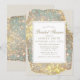 Denna eleganta bröllopsfest-inbjudan har en fantastisk iridisk glitterdesign i skimrande guld och pastelltoner. Den eleganta typografin och gnistrande accenterna skapar en sofistikerad och stilren look, perfekt för att fira den blivande bruden med stil. Anpassningsbar med evenemangsinformation, denna inbjudan lägger till en glamourös och modern touch till din bröllopsfirande. Perfekt för dem som söker en unik och strålande design.