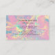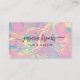 Med det här elegant-affärskortet har du en iriserande, opalinspirerad bakgrund som accentueras av utbuktningen av guld glitter. Starka nyanser av rosa, lavender, mynta gröntar och mjuk orange skapar en modern, feminin design som är perfekten för skönhetsiga professioneller, hårstilister och konstnärer. Denna lyxiga estetik är idealisk för företagare i kreativet som söker en chic och professionell för att visa sitt varumärke. Markera ditt unika stil med denna fantastiska och sofistikerade kortdesign.