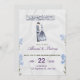 A beautiful Islamic wedding invitation featuring soft blue floral accents and a cute cartoon bride and groom. Perfect for Nikah or traditional Muslim weddings. Fully customizable with your names and date.