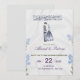 En vacker islamisk bröllopsinbjudan med mjuka blå blommiga accenter och en söt seriebrud och -brudgumme. Perfekt för Nikah eller traditionella muslimska bröllop. Helt anpassningsbar med era namn och datum.
