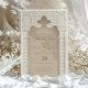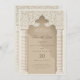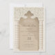 Börja resan till din speciella dag med den här exekveringen Spara inbjudan till datum, och fånga den islamiska arkitekturskönheten. En magnifik arkway, som accentueras av ett detaljerat rullverk och en klassisk kalligrafisymbol, skapar en viktig fokalpunkt, medan chevron-kolumnerna ram formar sig i subtila toner av grädde och taupe. Kortet är uppgjort i en palett i färg som sträcker sig från sand till elfenben och avspeglar en förfinad estetik. Med den texturerade pappra läggs djup till, vilket ger en fingervisning om den lyxiga händelsen för komen. Skicka en första glimt av bröllop som är lika minnesvärd och tidlös som själva dagen.