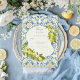 Den italienska eleganten Blue Tile Lemon Bröllop har dammigt blått färg och söt citron, snyggt och typsnittsinformation, modern och romantisk, underbar för trädgårdsmätare bröllop. Om du behöver någon annan matchande produkt eller anpassning kan du skicka ett vänligt meddelande via Zazzle.