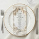 Elevate your luxury estate reception with this sophisticated dinner card, featuring a romantic, faux plaster relief design of an ornate arch and wisteria.Immerse your guests in the romance of a European estate with this artfully composed design. The visual aesthetic mimics the tactile beauty of a 3D bas-relief sculpture, rendered in a soothing monochromatic palette of creamy ivory, soft beige, and antique off-white. An ornate architectural arch, draped in hanging wisteria blooms, frames a serene pastoral landscape featuring a charming bridge, trees, and a pair of white doves, all unified by a simulated white plaster texture. The text is presented in a mix of classic serif and flowing script for a timeless finish.This is a flat printed image with a Faux Plaster Relief effect, not actual raised material or embossed paper.
