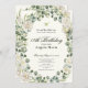 This elegant ivory and green floral 18th birthday debut invitation has peonies, a yellow butterfly, and an oval frame with a personalizable template to create your own message. The invitation template is customizable in the listing editor and is also available as a digital download that's printable after you personalize it. The back has the same floral frame as the text on the front.
