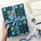 Vackra blåsvarta och akvatiska blommigtar abstrakt mönster med svarta blommor omgivna av glättade metalliska akvatiska löv som finns på presentförpackningens pappra omslag. Vi specialiserar oss på anpassningsbar-framtagna design och kontaktar oss om du vill ha en unik, beställd layout med den här klassiska svarta blomman och löven aqua.