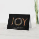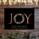 Elegant företagscertifikat med ord "JOY" i snyggt terracotta-typografi med "O" som avtecknas med en vattenfärgsutandning, allt mot en svart bakgrund. Du kan anpassa "Glad helg" hälsning, ditt företag namn och ett meddelande inuti.