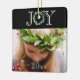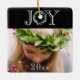 Festiv "joy"-typografi med faux eucalyptus-andedräkt för brev ’O’. Lägg till ditt personliga foto för att slutföra den här söt träd-ornamenten. Elegantens svarta bakgrund. Mönster på framsidan förs till baksidan av detta kort. Lägg till år för ytterligare anpassning.