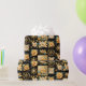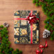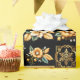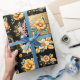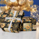 Vackra guldblommor och elfenben, prydnadsföremål från guld och "God jul" på en kontrasterande svart bakgrund skapar vackra och elegant som är pappra för dina julklappar.