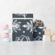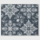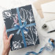 Fira den magical och festliga julhelgen med vår beställnings- helgdag som slår in papper. Vår eleganta helgdagdesign presenterar vårt egna mönster för snowflaken för hand plockadelövmönster mot en djup marinblå bakgrund. Skräddarsy med ditt initialt. Alla illustrationer som innehålls i jul för denna elegant, blad mönstersnowflaken som slår in papper, är original- konstverk för hand plockade vid Moodthology.