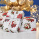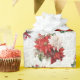 Elegant och chic sömlöst helgdag med buketter av röda och vita poinsetter, holly och gräs på ett subtivt grått- och vitt dammmönster.