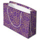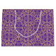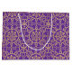 Den här klassiska presentsäcken är perfekt för presenter och firande på vintern. Den har en ornerad geometrisk mönster, med sammankopplade blomformer, hjärtformade petaler och dekorativt snöflingor. Den här vintagen inspirerade, traditionella designen tillför lite elegans till alla presenter! Tryckt färg: lila och faux guld struktur. Finns med en projektionsyta eller en glansig avsluta.