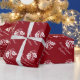 Elegant god jul som slår in papper med järneklöv och bär. Idé för Personalizable gåvasjal med anpassningsbarnamn och helgdagarmeddelandet. Röda eller gröna bakgrundsfärger för anpassade och hälsning. Förvåna din familj; avla, fostra, morfadern, systern etc.… med personligsäsonhälsningar. Chic typografidesign för flott presenter.