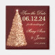 Elegant jul bröllopen "Spara datum"-design med mousserande Julgran Guld och rött, samt anpassade namn och datumtext.