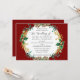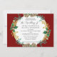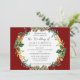 "Elegant Jul Vatercolor Guld Holly Wandebröllop Bröllopsinbjudan." Vågrät 5 tum x 7 tum formatlayout. Modern vattenfärgsblommigt i elegant med gräs-koner, löv-grönare, holly löv och bär med guld-löv. Den djupa burgundröda bakgrunden har en mjuk gyllene stänk som upprepas på baksidan. Konstverk med vattenfärg skapades av den internationellt licensierade konstnären Audrey Jeanne Roberts. Copyright.