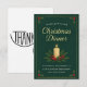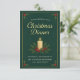 Arrangera en minnesvärd och stilfull julfest med denna Eleganta Juldinnerinbjudan. Designen har en vacker, mörkgrön bakgrund med subtila tallmönster och en delikat guldbård. Mittenpartiet är ett varmt, tänt ljus omgivet av klassiska julgraningsbär och tallbarr, som frammanar en mysig, traditionell festlig atmosfär.