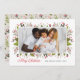 helgdag "God jul" har en blommigt helgdag gröna löv och bär som gör att ett rektangulärt foto av vågrät skapas. Innehåller elegantens röda skript hälsning och anpassningsbar som kan vara personlig på kortets framsida och baksida. Två extra fyrkantiga fotoutrymmen och ett samordnande blommönster klär sig på baksidan av kortet. I designen ingår klassiska skuggor av rött och grönt parad med neutralt, vitt, grått och taupe färg.