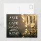 Utforska charm hos våra eleganta postkort med spara datum. Med detaljer som festliga juldekorationer, gnistrande strängljus, två champagneglas och en modern textmall som är enkel att anpassa, ger dessa kort en oemotstålig dos glamour till era kommande festinbjudningar. Perfekt för de som uppskattar den intima värmen hos handskrivna meddelanden och den festliga magin under julen.