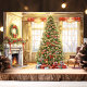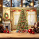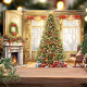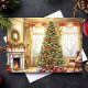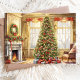 julens värme och glädje med detta vackra hälsningskort som visar en elegant vardagsrum med ett fantastiskt Julgran. Den mjuka glöden av kaminen, det vackert inslagna presenter och de festliga dekorationerna skapar en scen som framkallar säsongens anda. Det här kortet är perfekt för att skicka önskemål till vänner och familj.