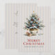 Skicka dina julklappar med lätthet i år med det här enkla, elegant-kortet som har ett dekorerat Julgran i en underbar porslinsburk med några omslagna presenter under träd. Med en bakgrund för vintage av det palmsta blå gråttet och det röda beige lodrät rand får den här designen en snyggt att tryckas vid. Klassisk serif typsnitt skriver ut "God jul från vårt hus till ert". Du kan redigera den här texten eller lämnan som skriven. På baksidan av kortet finns ett provmeddelande med helgdag tillsammans med ditt eller dina namn. Redigera mallen och du har ett julkort i anpassningsbar som du är stolt över att skicka till vänner, familj och medarbetare.