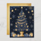 Det här vackert designade julkortet har ett elegant dekorerat Julgran med gyllene prydnadsföremål och ljus, med en lysande guldstjärna. Träd står på ett framträdande sätt mot en mörk med subtil löv mönster och snöflingor. Kortets framsida fångar den feberstarka andan med dess berikande och festliga utformning. På baksidan har kortet en tom vintage-stil-sida med dekorativt snöflingor, vilket ger gott om utrymme för att skriva ett personligt och hjärtligt meddelande. Perfekt för att skicka varmt helgdag till nära och kära.