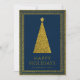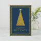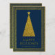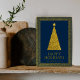 Elegant julgran med guldglitter i marinblått julkort