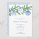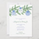 En inbjudan till elegant helgdagars möhippa med par med en koordinerande blå och vit baksida av grekiska Nyckel mönster. Fir träd gren och kinoiserie-baublerna målades ursprungligen av mig i vattenfärger innan de skannades in i digital form. Jag har satt upp mallen för en Möhippa Party, men fält är helt och hållet anpassade till dina behov.
