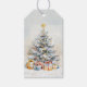 En elegant Julgran i vintagens vattenfärg ger dessa vackra helgdag märkre. Baubles från söt guld belyser det snönära gräs och en lysande stjärna är på toppen. Gåvor och paket i söt färg omger basen i träd. Hälsning är på motsatt sida och är "God jul", även om du kan ändra det till en annan hälsning i säsong som du själv väljer. Se till att ändra familjen namn och året till det du vill se.