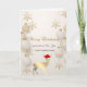 Elegant falskt guld julhjort med tomtehatt, bollar och snöflingor på en krämfärgad bakgrund. Idealiskt kort att skicka från ditt företag/organisation eller från din familj. . . Personifiera genom att skriva ditt namn efter 'från' på framsidan av kortet....