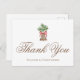 Det här vintage julkortet tackar för bröllopspresent och har en vacker nostalgisk julklocka insvept i ett festligt rött band under gröna tallbarr. Elegant kursiv stil i gammalbrun typografi för ett traditionellt minimalistiskt brudpar under vintern.