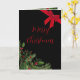 Vår Elegant jul vikta vykort lägger till en touch av klassisk sofistikation till dina julhälsningar med detta anpassningsbara julkort! Kortet har en rik, svart bakgrund som får de festliga detaljerna att verkligen sticka ut. Denna design har frodig akvarellgrönska med livfulla röda bär i det nedre vänstra hörnet, perfekt balanserad av ett lyxigt rött sammetsstrukturerat band i det övre högra hörnet.