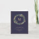 Det här eleganta och moderna julkortet har en fantastisk julkrans med gröna blad, röda bär och vackra förgyllda detaljer, med din initial eller monogram i mitten. En klassisk förgylld ram pryder kanten och bakgrunden är rik, mörkblå.