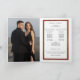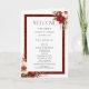Denna romantiska och klassiska jul- eller vintertematiska utformning av bröllopsprogrammet innehåller kluster av pulserande röda och vita vinterblommor, gräs, hullbär och rustika kvistar, anpassningsbar modern textgrafik och redigerbar text fält omgiven av en rik röd damm gräns med guld kant. På insidan finns en fotomall och fält med anpassningsbar textgrafik. Bakåt innehåller ett In-PM-foto och fält.