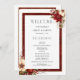 Denna romantiska och klassiska jul- eller vintertemainriktade programdesign innehåller kluster av pulserande röda och vita vinterblommor, gräs, hullbär och rustika kvistar, anpassningsbar modern textgrafik och redigerbar text fält omgiven av en rik röd damm gräns med guld kant.