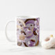 Det här kaffet mugg visar en chic och en uppfriskande design som framhäver kaffematerial med blommor och rosett band. I mönster ingår kaffe koppar och kaffebönor som är elegant placerade på en mjuk lavenderbakgrund med subtil stripe struktur. Att framhäva konstruktionen är lyxigt gyllene och lavender rosett band, som skapar en känsla av sofistikering och charm. I mitten kan ett monogram som är inneslutet i ett lavender-framlagt emblem vara personlig med initialer och skapar detta mugg som ett idealiskt val för en anpassad gåva eller en snyggt som tillägg till en kaffemodling i älskare.