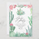 Elegant Kaktus och Rosa Blommor Trädgårdsfest Inbjudningar