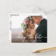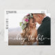 Modern Elegant Calligraphy-skript ändrar datumet Bröllop sköt upp ett par foto-vykort