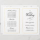 Det här programmet är en 8,5 x 11-sida som kräver att du viker ihop den. Guld gräns är en utskriven bild av guld. Klassiskt underskattat svart-vitt bröllopsprogram med en modern beröring som innehåller eleganten av ord "Bröllop" på ytterhöljet och guld gräns.