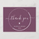 NewParkLane - Sofistikerat personligt bröllopskort, med 'Tack' i elegant typsnitt / kalligrafi med svängar, ett litet vitt hjärta och en prickad rund ram, mot en burgunder / plommonfärgad bakgrund.