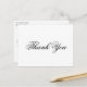 Elegant bröllop tack vykort med en enkel och klassisk design med "tack" i en formell svart kalligrafi över en vit bakgrund. Baksidan har ditt personliga meddelande och returadress för enkel frakt. En traditionell och elegant design som är perfekt för ett svart band bröllop.