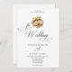 Elegant-kalligrafi guld ringar och ro bröllop inbjudningar