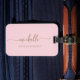 Elegant Chic Modern Guld Monogram Namn Signatur Script Anpassad Personlig Rosa Läder Bagage Tag. Denna känsliga design med anpassat namn i en kursiv handskriven svans typsnitt kalligrafi (eller typografi) och fullständigt namn i guld på rosa eller baby rosa färg bakgrund. Dessa är lätta att anpassa. Stilig feminin present för bröllop, söt 16-årsdag, brud shower, examen och för någon som älskar glam stil.