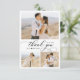 Klassiskt, modernt, Elegant Script 3 Photo Collage Bröllop - tackkort i svartvitt. Snyggt, minimalistisk bröllop-kortmall med fem (3) rasterfotokollage på framsidan och ett (1) foto på baksidan. "Tack" text i ett handskriftsformat typografi- eller kalligrafiskript med svan. Lilla kärlek-hjärta mellan namn. Anpassa med ditt namn och tack för meddelandet. Om du behöver hjälp eller matcha objekt kontaktar du designern!