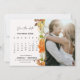 Det här vackra höstbröllopskortet har en redigerbar kalender och ett utsökt skrivfont med en vacker höstdesign. Ändra månaden och fyll sedan i datumen för varje dag. För att flytta hjärtat, klicka på den blå knappen "redigera med designverktyg" i personaliseringssektionen.