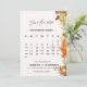 Denna eleganta höstbröllopskort har en redigerbar kalender och ett exklusivt script-font med ett vackert hösttema. Ändra månaden och fyll i datumen för varje dag i månaden.I personaliseringssektionen, klicka på den blå 'redigera med designverktyg'-knappen för att flytta hjärtat.