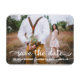 Dela ut din bröllopsdag med stil med denna stilrena och unika borst-kalligrafi skript stil par foto spara datum magnet.