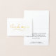 Personliga, eleganta tack-kort i riktig folie med modern kalligrafi-skrift accentuad med ett hjärta på framsidan och med möjlighet att välja ett förtryckt meddelande och namn inuti eller ta bort exempeltexten för att lämna utrymme för handskrivna personliga anteckningar. HJÄLP: För hjälp med designändring eller anpassning, färgbyte, storleksändring, överföring av designen till en annan produkt eller om du vill ha koordinerade artiklar, kontakta designern INNAN du beställer via Zazzle Chattens MEDDELANDE-flik nedan eller mejla makeitaboutyoustore@gmail.com.