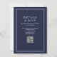 Denna moderna, eleganta kant i marinblå bröllopsinbjudan kan anpassas med din information i chic typografi med detaljer om din bröllopswebbplats och din QR-kod på baksidan. Designad av Thisisnotme