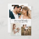 Elegant, Minimalistiskt, Modern Handskrivet "Kärlek och tack"-fotosamlingskort. Snyggt bröllop tackar dig för att du har en kortmall med tre (3) foto på framsidan och ett (1) foto på baksidan. Med texten "Kärlek och tack" i ett snabbt tecken som skriver typografi eller kalligrafiskt skript, byts svan-teckensnitt i svart mot vit bakgrund. Lätt att lägga till namn och tack för meddelandet. Om du föredrar att skicka anteckningen tar du bara bort exempeltexten för att få mer utrymme. Kontakta mig om du behöver hjälp eller matcha objekt!