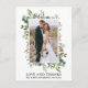 Elegant vattenfärg vintergrönska bröllopsfoto tack-kort inkluderar eucalyptusblad och röda julholberry