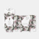 Designen visar de eleganta och realistiska bilderna av mjuka rosa rosor och vita hortensior när de omger din text. Övre klaffen bär det lyckliga parets monogram. När klaffen lyfts upp avslöjas ditt meddelande om tacksamhet! Brudens och brudgummens namn, tillsammans med datum för bröllopet, visas nedan. Baksidan visar bilden av en silverkorsfästelse ovanför ditt anpassningsbara meddelande. Bilden av mjuka, eleganta blommor strömmar längs sidorna och toppen av produkten och skapar en elegant design.